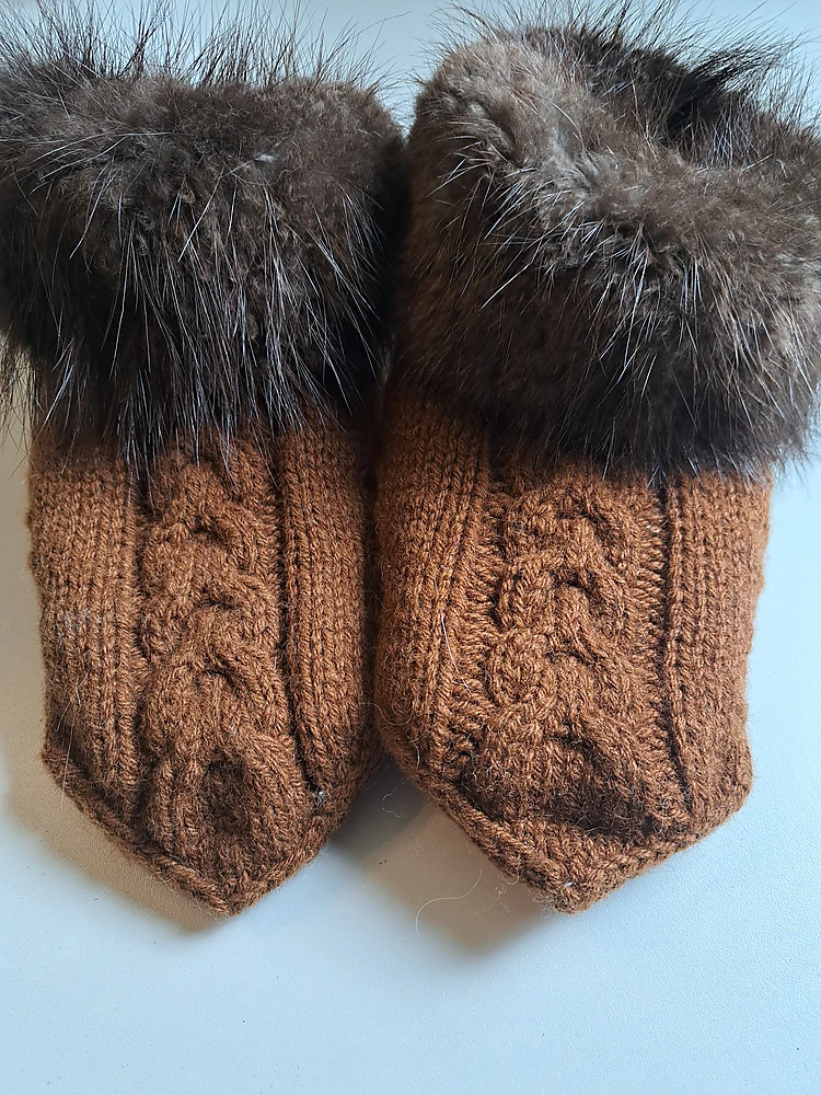 Šobrīd pieejamas vienas 36-38 izmērs. Risinājums ļoti salstošām kājām. Čību veido no bebrādas uzšūts zābaciņš, pāri tam aitas vilnas adīta zeķe. Bebrāda ir ļoti izturīga , līdz ar to kalpošanas laiks ir ilgs. Virsējo adīto daļu var nomainīt, ja tā nolietojas.